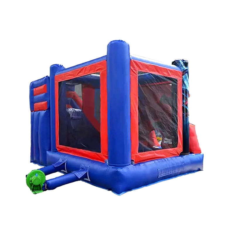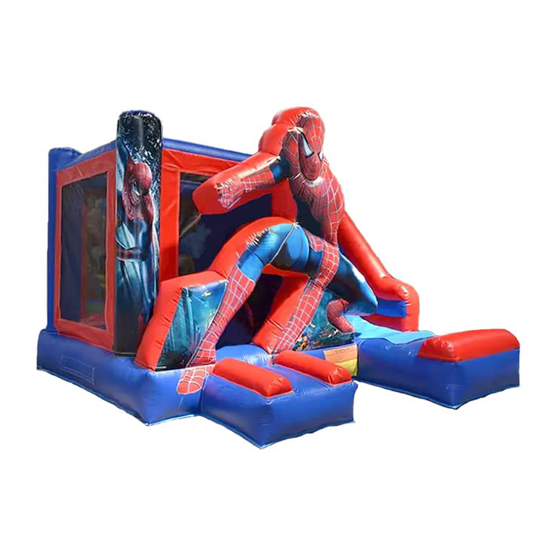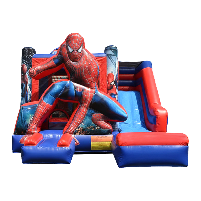 Este castillo hinchable de Spiderman es el sueño de cualquier pequeño superhéroe. Con un vibrante diseño en tonos rojos y azules, captura perfectamente la esencia del famoso trepamuros.